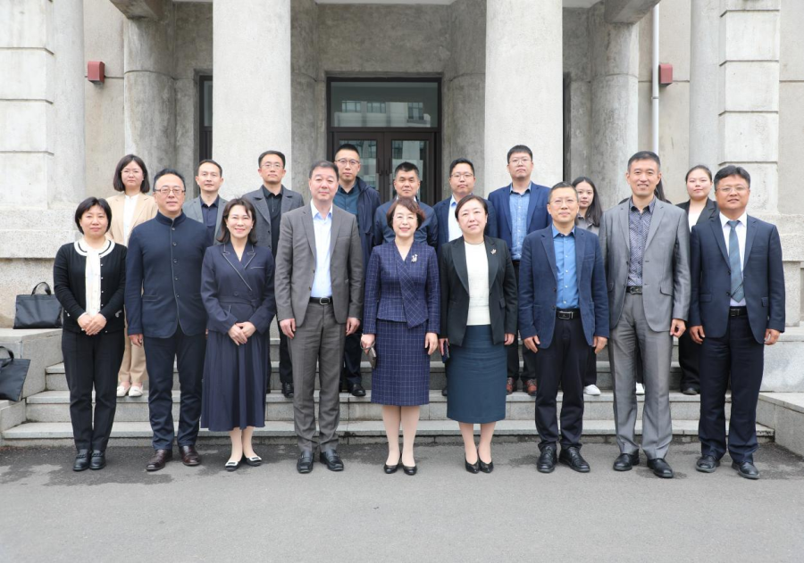 在党政办公楼前合影留念